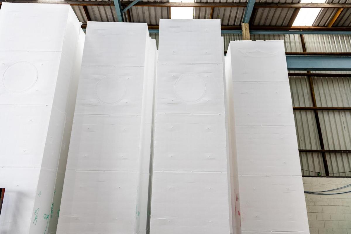 GEOFOAM is a solid block of (EPS) Expanded Polystyrene and is available in a range of densities from 12kg up to 30kg/m3.